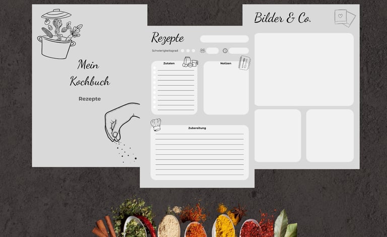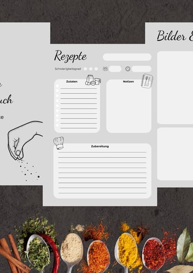 Essensplaner, Einkaufslisten und Rezeptvorlagen.